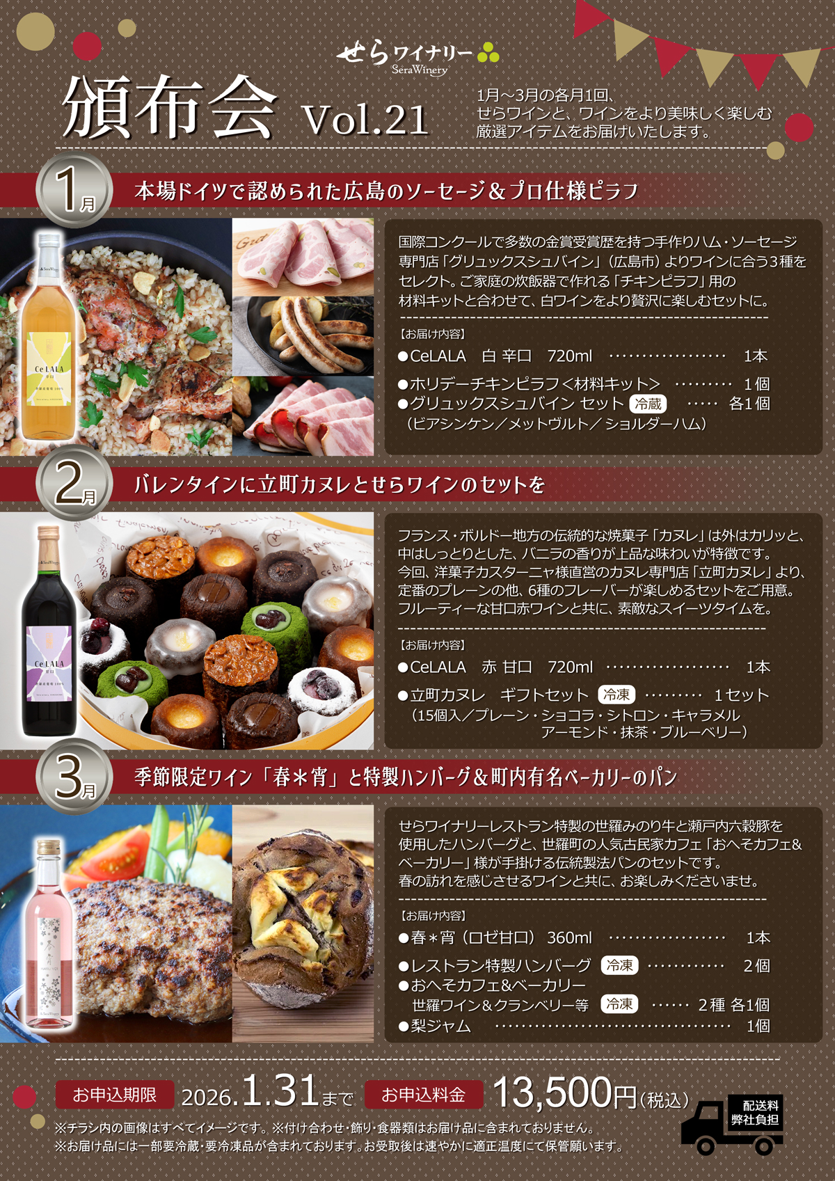 【サービス情報】2026年1月1日受付スタート!「せらワイナリー頒布会Vol.21」 2026年1月31日まで店頭・公式WEBショップにてご注文いただけます。