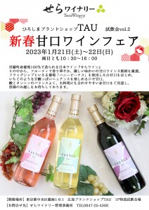 【出張イベント情報】1月21日(土)・22日(日)にひろしまブランドショップTAU(東京都中央区)にて「せらワイン試飲販売会vol.2」を行います。 ※終了致しました