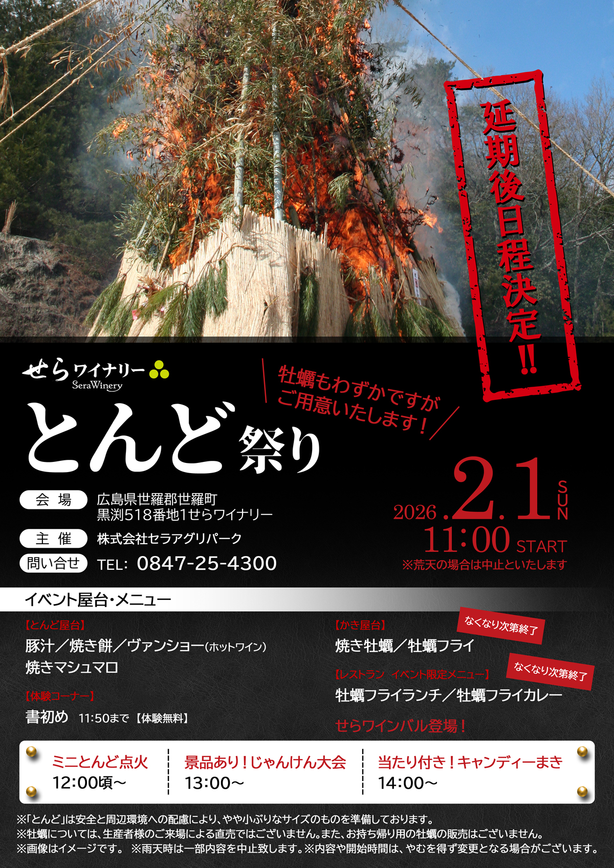 【イベント情報】延期後開催日決定!2026年2月1日(日)「とんど祭り」開催!(会場:せらワイナリー)