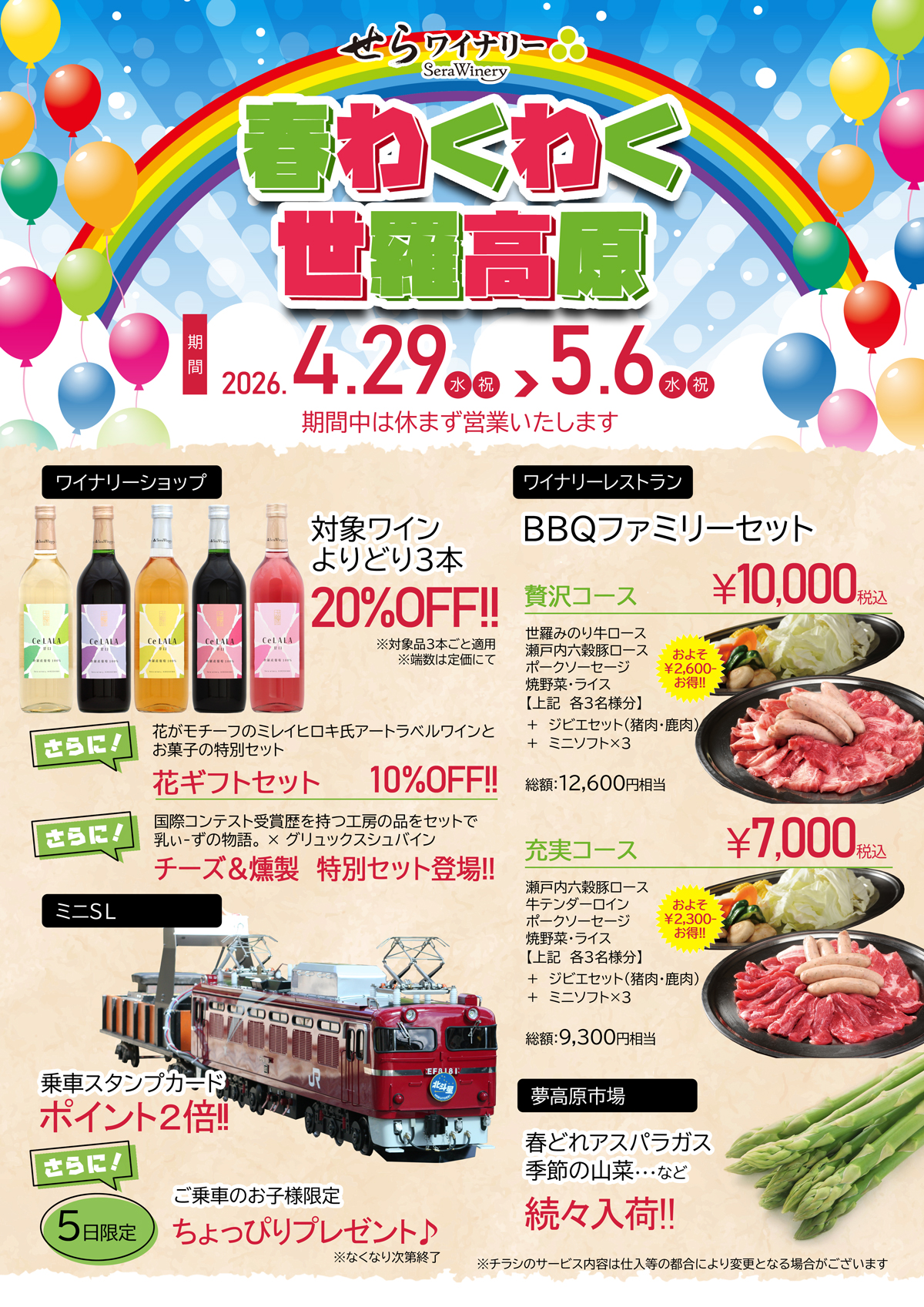 【イベント情報】2026年4月29日(水/祝)~5月6日(水/祝)「春わくわく世羅高原(ゴールデンウィークイベント)」開催!
