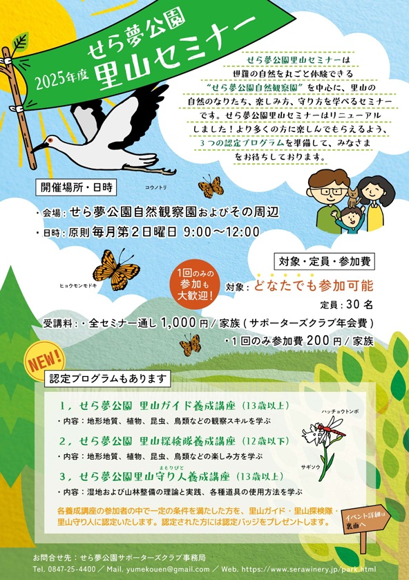 せら高原の自然を丸ごと体験できる“せら夢公園自然観察園”や、様々なフィールドに
