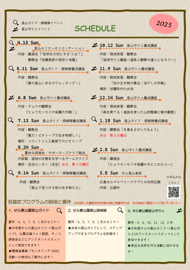 今年年度の里山セミナーのスケジュールです。(チラシのダウンロード)